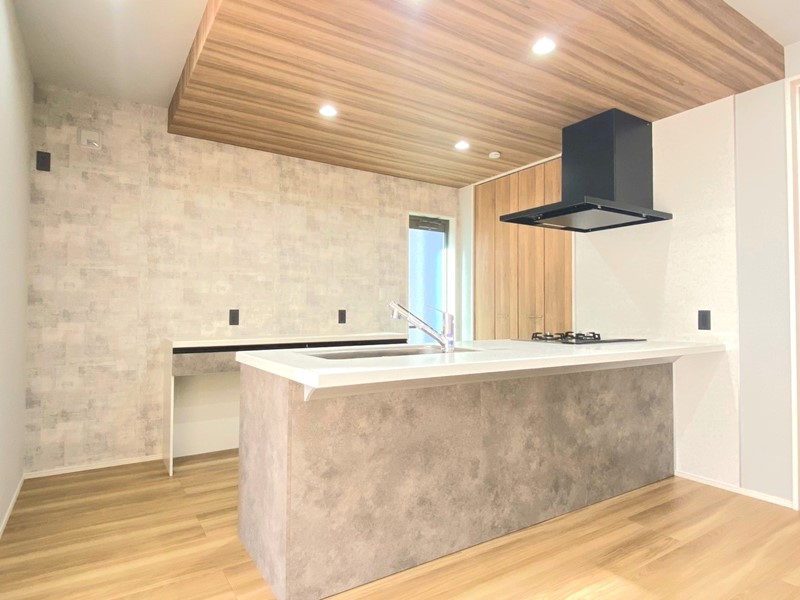 【キッチン】人気のペニンシュラキッチンはゆったりサイズで作業しやすく、お料理を楽しくしてくれます。