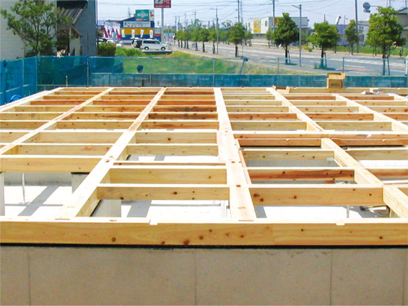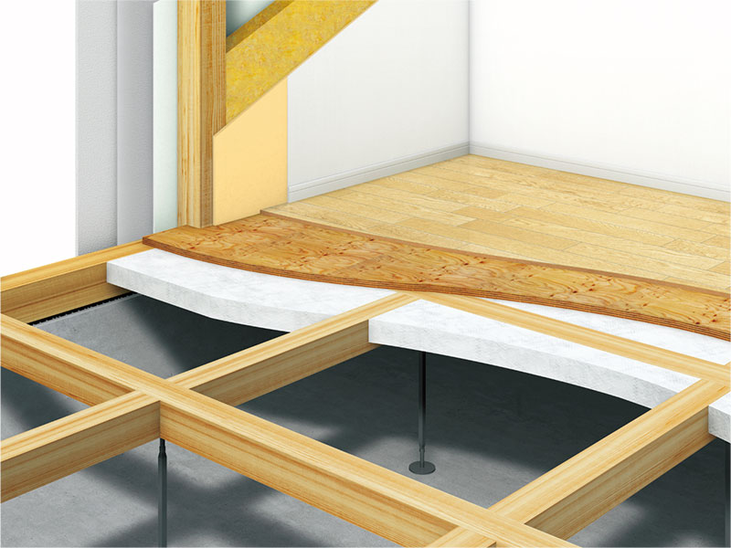 1階と2階の床には、剛床工法を採用。構造用合板を土台や梁に直接留めつけて、床全体を一体化。地震の横揺れにも効果を発揮します。