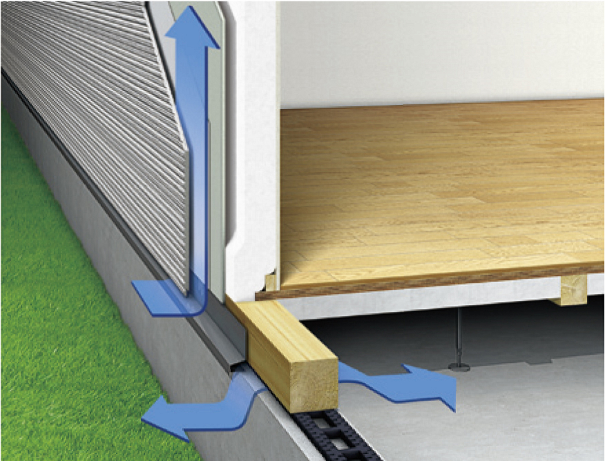 外壁材と構造躯体の間に外気が流れる通気層があり、湿気を外部に放出。壁内の通気層は屋根裏まで通っており、結露や湿気を少なくすることで、構造体や断熱材を腐食やカビから守り、建物の耐久性を向上させます。
