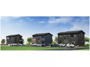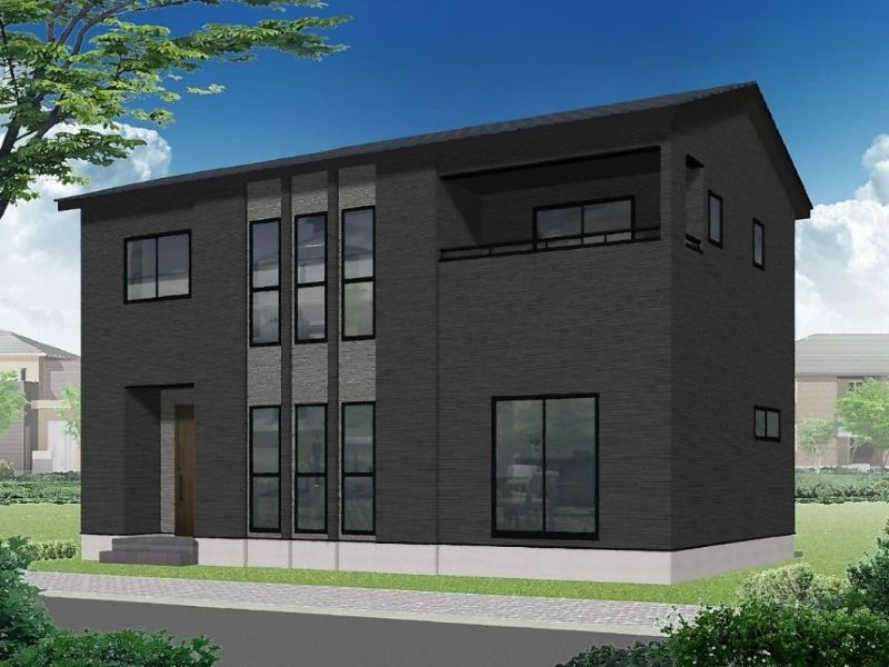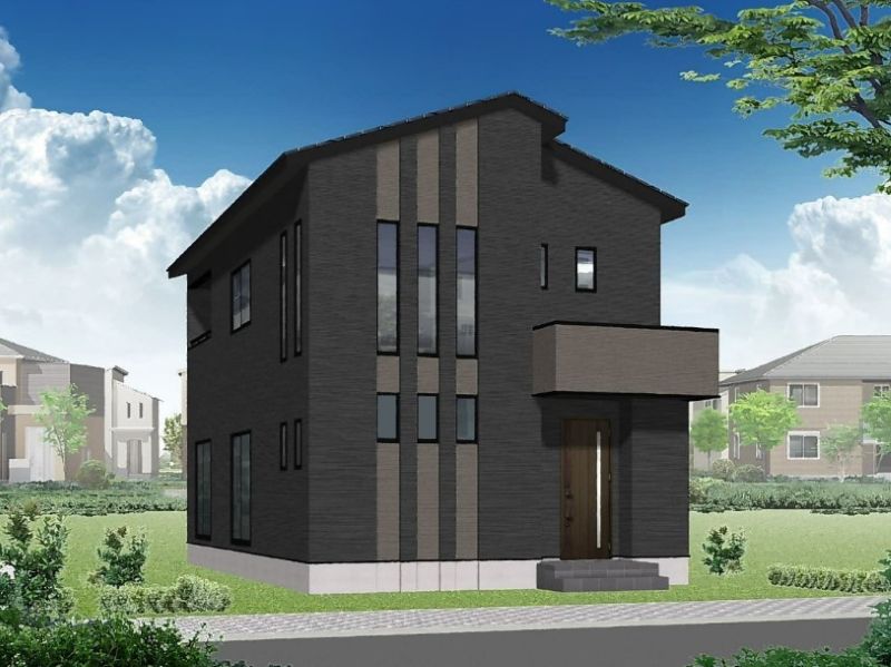 【街並み完成イメージ】シックなブラックを基調とした外観は、洗練された大人の佇まい。モダンなフォルムと質感のある外壁材が調和し、年月を経ても色褪せない美しさを実現しました。