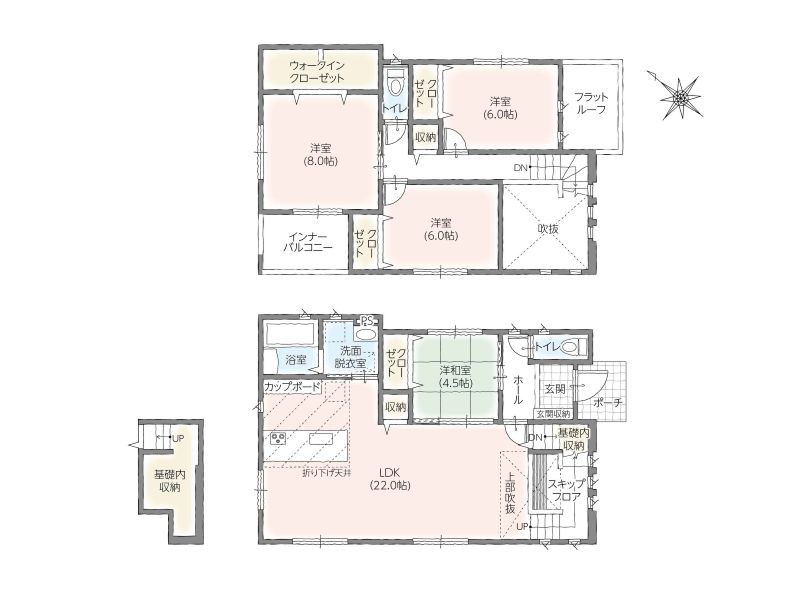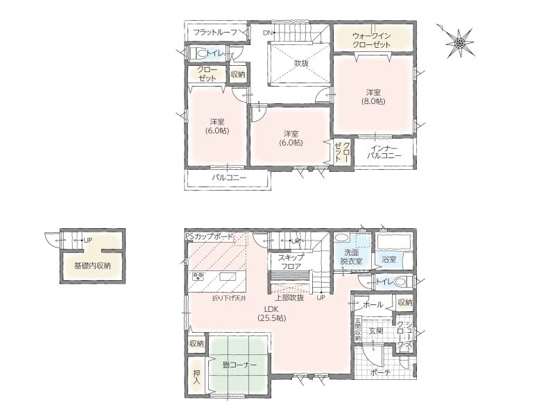 | 延床面積 | 118.00㎡(35.69坪)~123.38㎡(37.32坪) |
