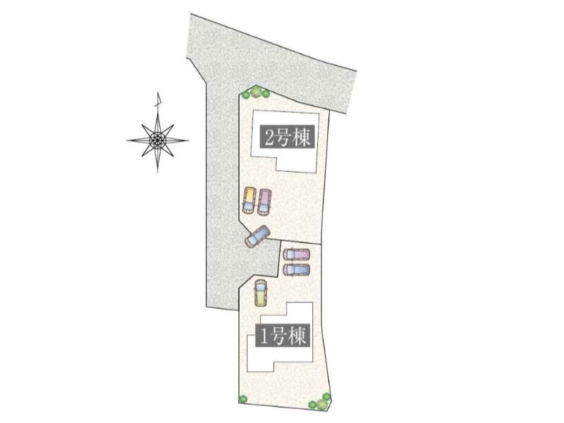 | 土地面積 | 1号棟:239.43㎡(72.42坪) 2号棟:229.20㎡(69.33坪) |