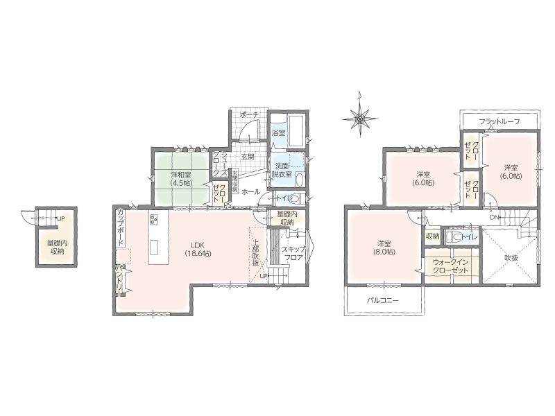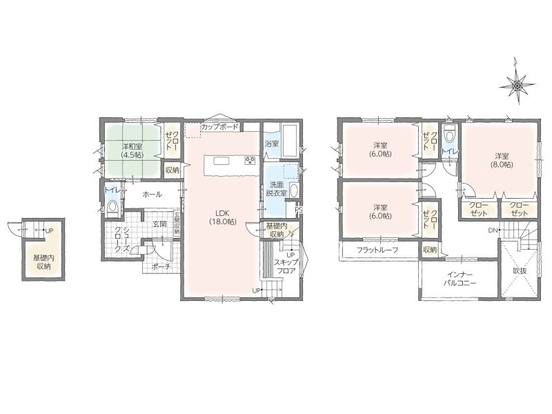 | 延床面積 | 1号棟:115.92㎡(35.06坪) 2号棟:130.83㎡(39.57坪) |