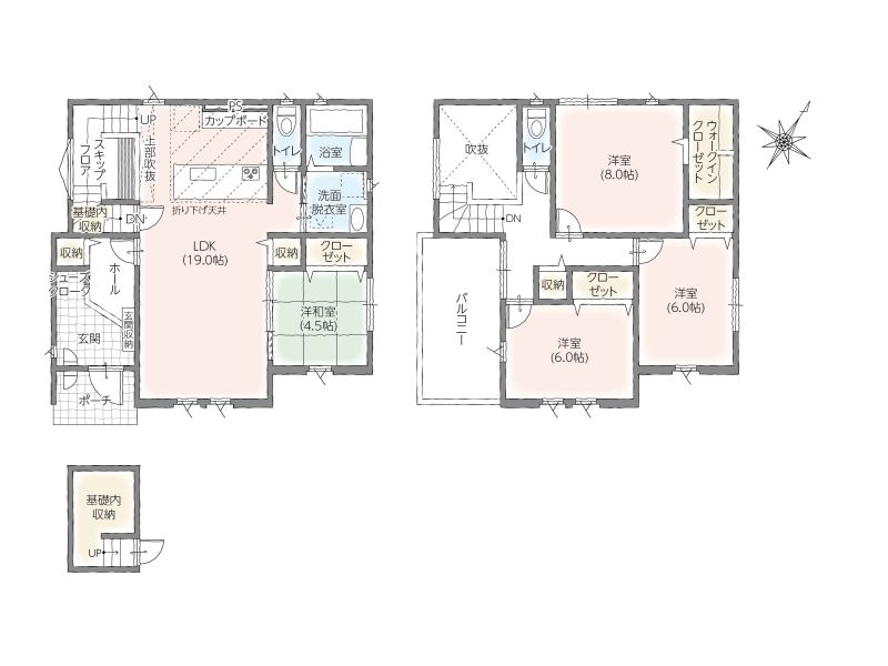 | 延床面積 | 1号棟:118.00㎡(35.68坪)、2号棟:112.61㎡(34.06坪) |