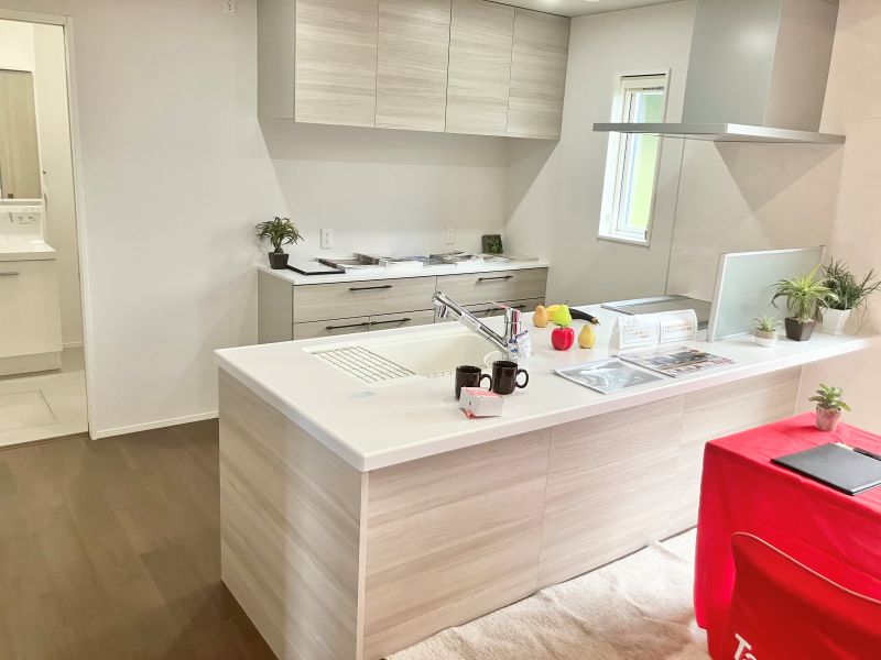 【ペニンシュラキッチン】対面のカウンターとしても使える広い天板は、お料理の際にもゆったりと使えるキッチンです。リビングやダイニングを見渡せるので便利です(画像はイメージ)。
