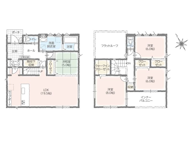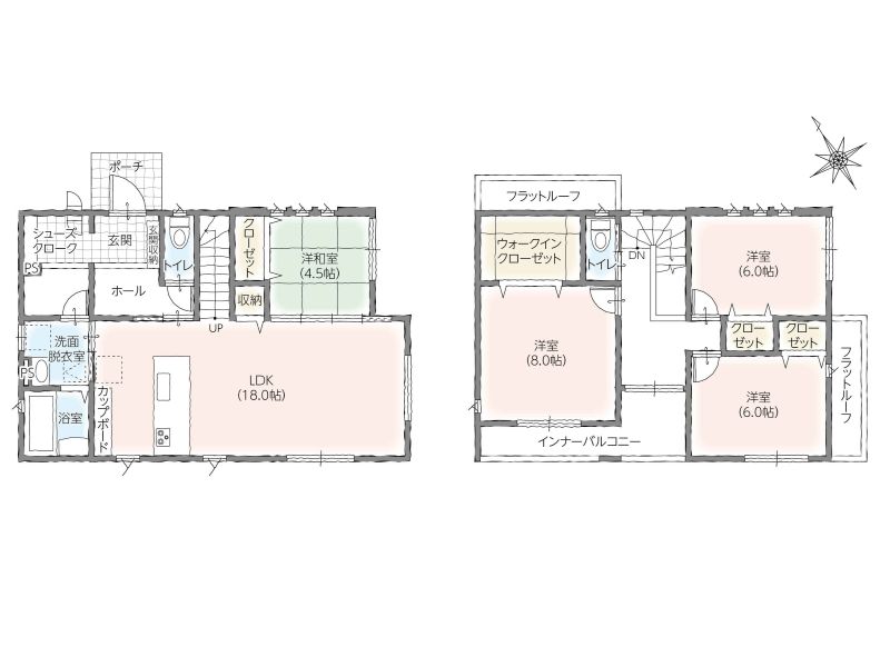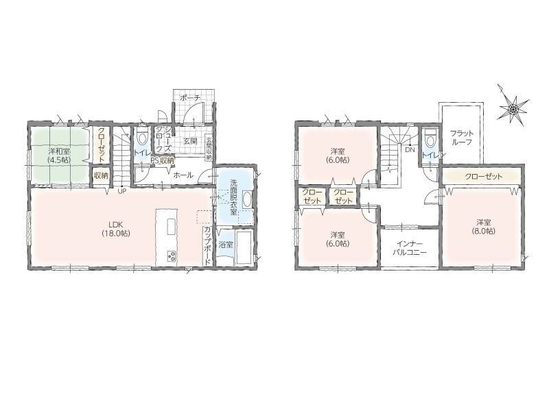 | 延床面積 | 112.61㎡(34.06坪)~114.26㎡(34.56坪) |
