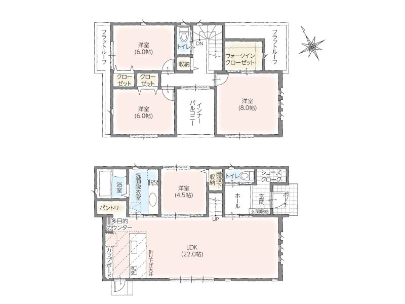 | 延床面積 | 114.69㎡(34.69坪)~117.03㎡(35.40坪) |