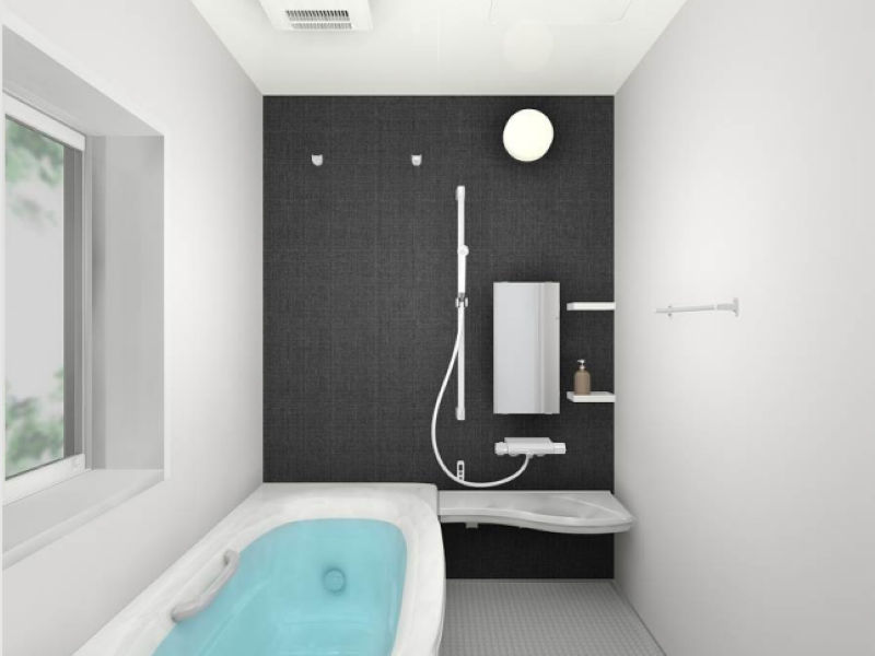 【浴槽】浴室乾燥暖房機も標準装備。断熱材ですっぽりと覆われた『まほうびん浴槽』は4時間後の温度変化がなんと‐2.5℃!いつも適温で入浴ができ、とても経済的です。
