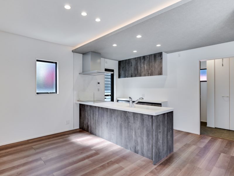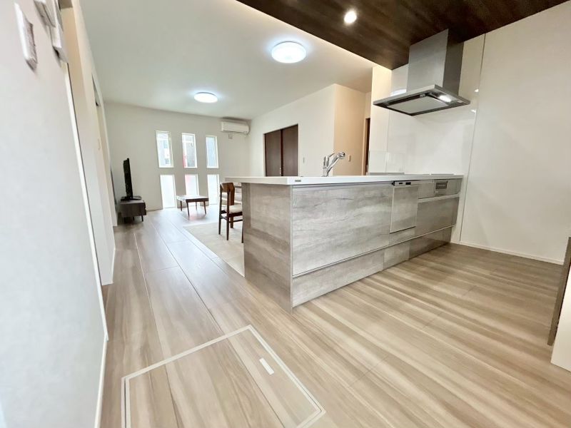 【キッチン】人気のペニンシュラキッチンを採用!!食器洗浄機もついていて、奥様の家事の手助けとなります!!前面に壁が無く、開放的な空間でお料理を楽しむことができます♪