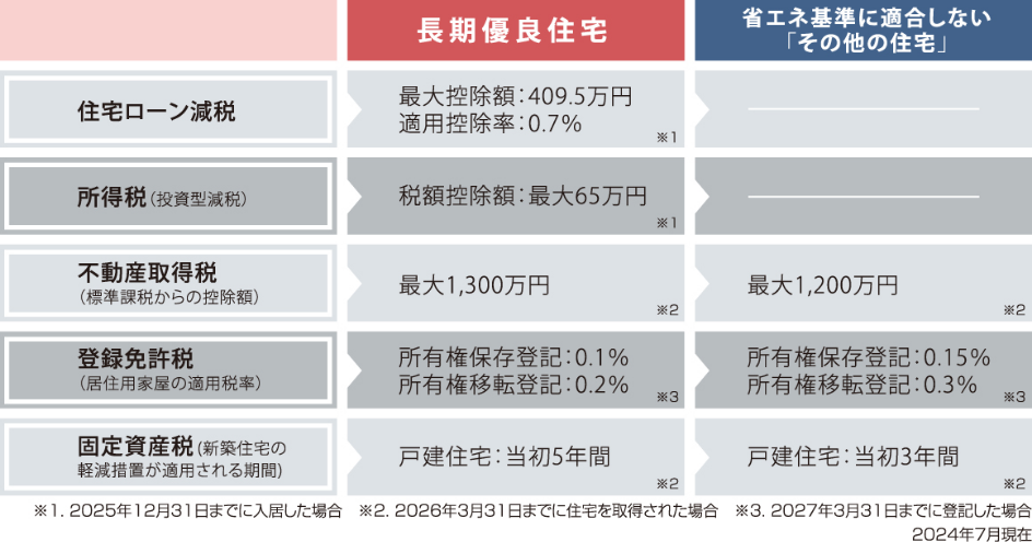 ※ 「長期優良住宅建築等計画」を作成し、申請後、認定されてからの着工となります。長期優良住宅の申請にあたっては別途申請費用が必要となります。プラン及び諸条件によっては対応できない場合があります。(住宅性能表示制度の耐震等級【等級3】、断熱等性能等級【等級5】以上、一次エネルギー消費量等級【等級6】の設計が必要となります)。