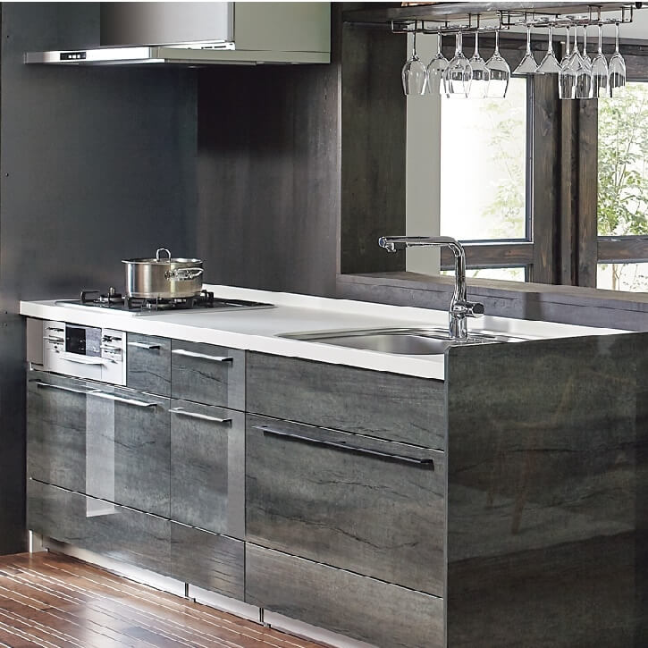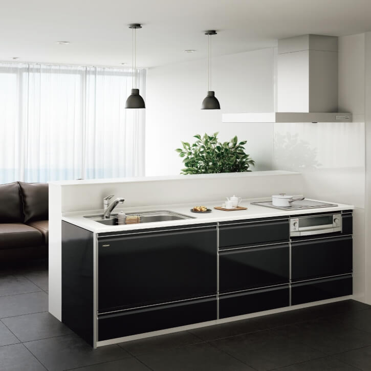 システムキッチンは、多くのメーカー、形状、豊富なカラーバリエーションの中からお好みに応じて自由にチョイス。また、機能性や収納力も追求しているので、限られた空間を効率よく活用できるキッチンを実現します。