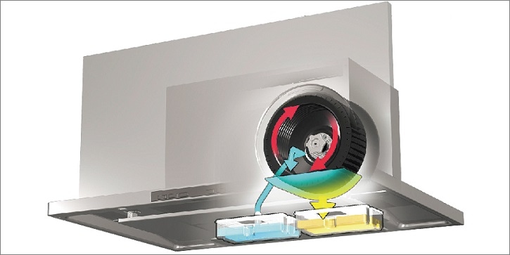 整流板効果で、周囲の吸込み力をさらに強化。 フードの外側に逃げる油煙も逃さず吸い出します。