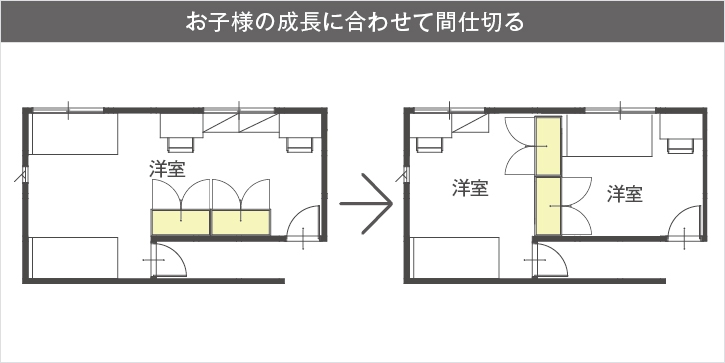 例えば、こどもが小さいうちは広い部屋で兄弟一緒に遊ばせる。大きくなったら個室にしてあげたい。