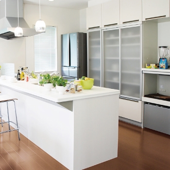「大安心の家 [暖]」は自由設計の家。だから、住空間をより効率的に使うためのアイデアを反映できます。例えば、家族構成や生活動線を考慮して、フロア下や階段下に大きな収納スペースを施工することも考えられます。もちろん、キッチン、洗面台、トイレ 玄関収納といった標準の設備にも、豊富な収納スペースを確保しているので、家をいつもスッキリ、きれいに保つことができます。