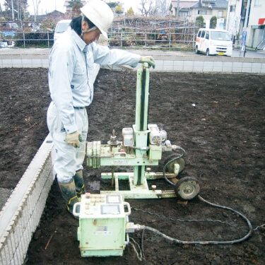 タマホームでは、契約後、着工前に地盤調査を実施し、建築に適した強度を有しているかを確認します。その結果、地盤の強度が不足していると判断した場合、基礎補強工事や地盤改良工事(※)を行い、建築に適切な地盤の強度を確保いたします。さらに、お引き渡し後10年間は、万が一の地盤沈下による建物の損害が発生した場合に備え、大手損害保険会社の保険による賠償資力の確保を適切に行い、地盤保証を行っております。