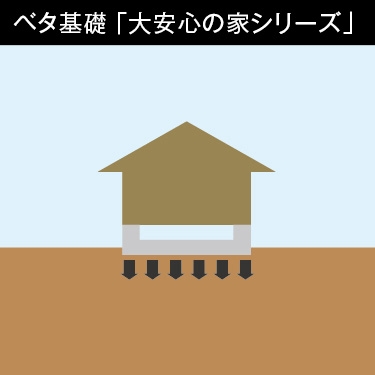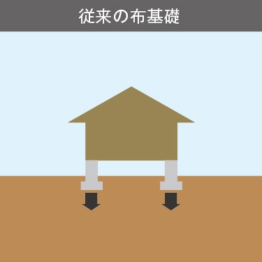 - 従来の布基礎に比べて設置面積が広く、基礎部分にかかる力を面で分散。