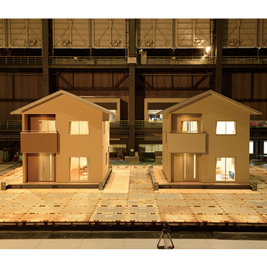 タマホームが標準とする「耐震等級3の家」と建築基準法の「耐震基準ぎりぎりの家」に対して木造住宅を倒壊させやすい波形を持つ、震度7の揺れを連続して与える実大振動実験を同時に実施。大きな被害が確認された「耐震基準ぎりぎりの家」と比べ「耐震等級3の家」は、継続使用も可能な状況であることが確認されました。