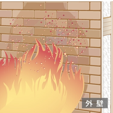 外壁には、火に強い不燃材料に認定された外壁材を標準仕様として採用。万一、隣の家で火災が発生した際でも、もらい火や火の粉の影響を受けにくく、ご家族と住まいをしっかりと守ります。完全無石綿化(ゼロアスベスト)を実現することにより、環境にも配慮しました。