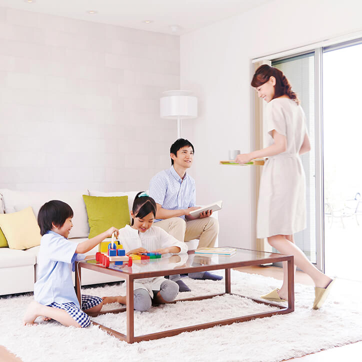 20年、30年と時が経っても安心して暮らし続けるために、しっかりとした構造性能を重視。日本の風土に合う木造軸組在来工法を採用し、地盤調査からベタ基礎、頑強な柱や壁で、耐久性のある家を実現しています。