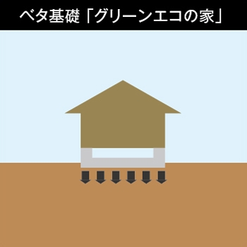 - 従来の布基礎に比べて設置面積が広く、基礎部分にかかる力を面で分散。