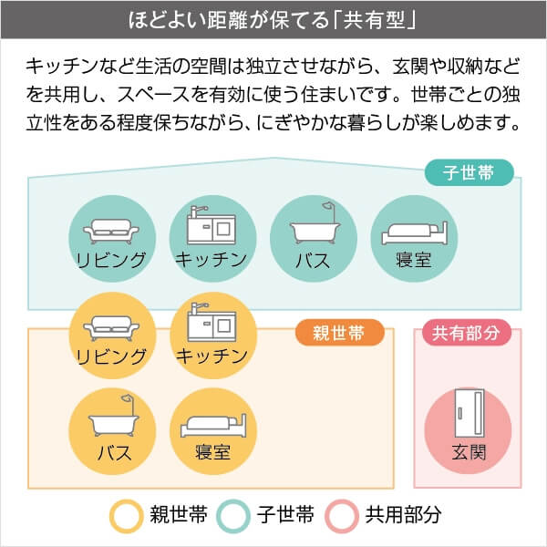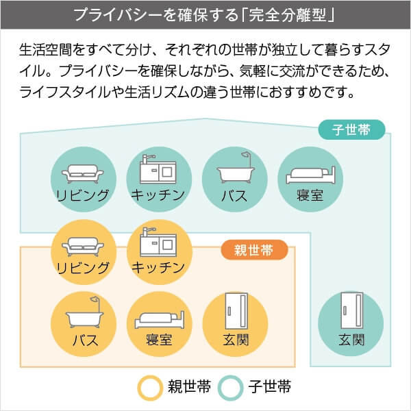 二世帯が適度な距離感をもって心地良く暮せる住まい。