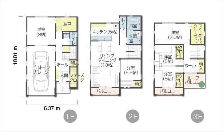 2階以上を居住空間にすることで、1階をより有効に活用できます。
