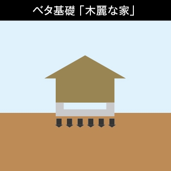 - 従来の布基礎に比べて設置面積が広く、基礎部分にかかる力を面で分散。