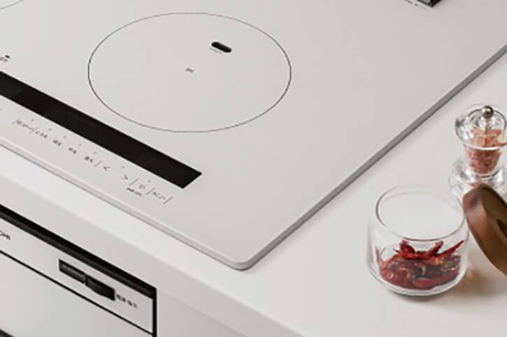 トッププレートの外周を囲むフレームを薄型にして段差を少なくしました。サッと拭けてお手入れも簡単です。