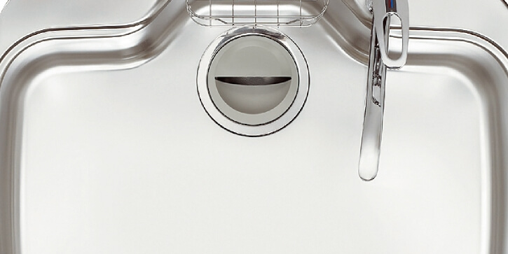奥行きたっぷりサイズのシンク。水はね音も低減できます。
