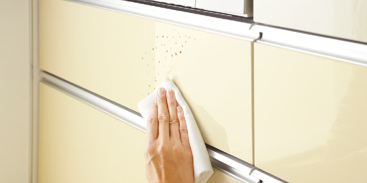 EB照射により表面に強靭な塗膜を形成。擦り傷に強く、汚れが落ちやすくなっています。