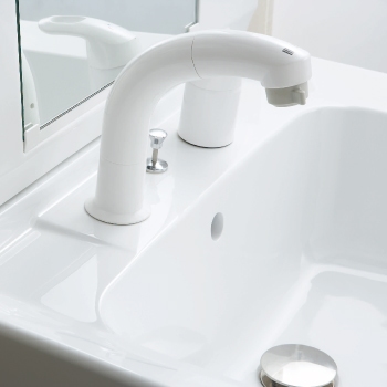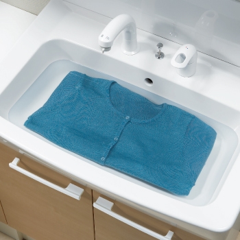 広さも深さもたっぷりの洗面器は、洗顔はもちろん、つけ置き洗いにも便利です。