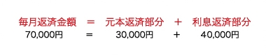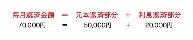 であったものが2年目に金利が2%に上昇したとすると、返済金額7万円の内訳は次のようになります。