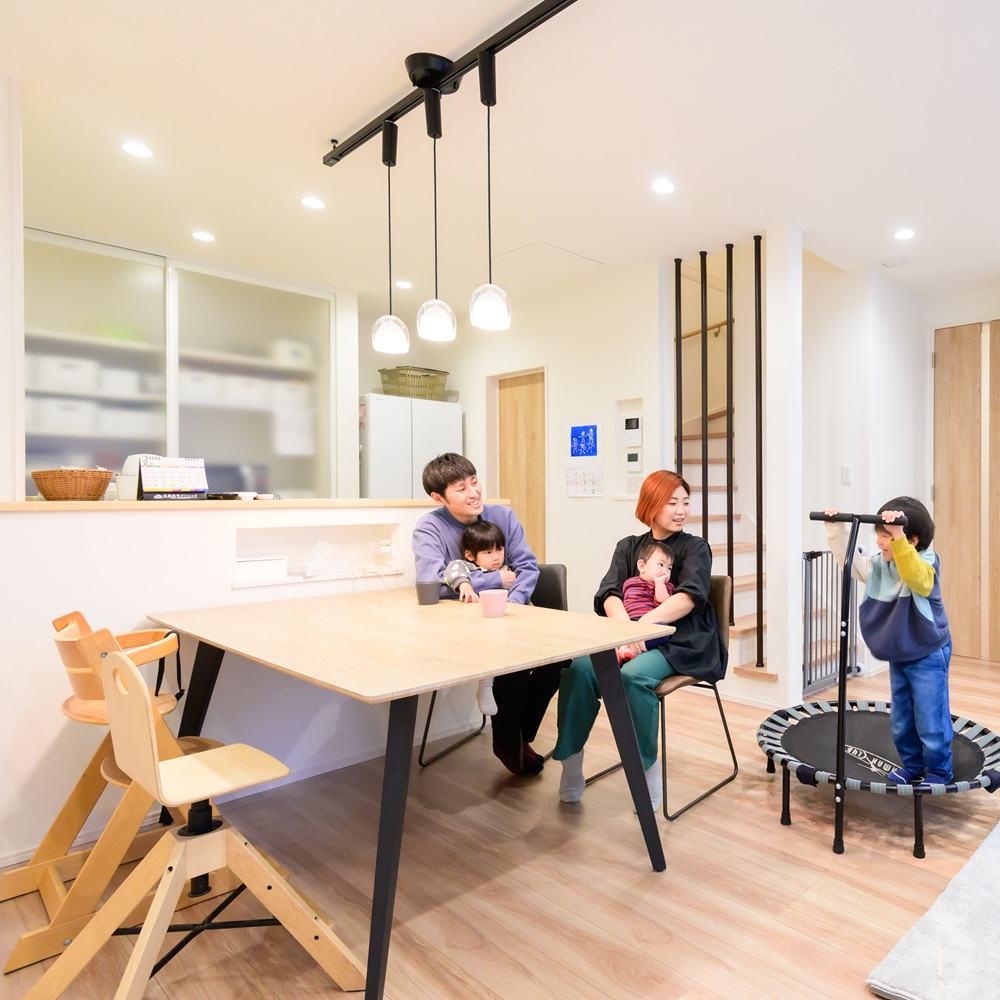 子育てや家事がしやすいように1階ですべての家事ができるように間取りを工夫しています。家事を効率よくこなせるようになったおかげで、子どもと遊ぶ時間が増えて、家族で過ごす時間をより楽しめるようになりました。