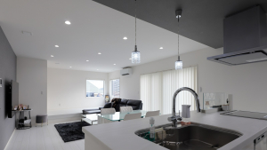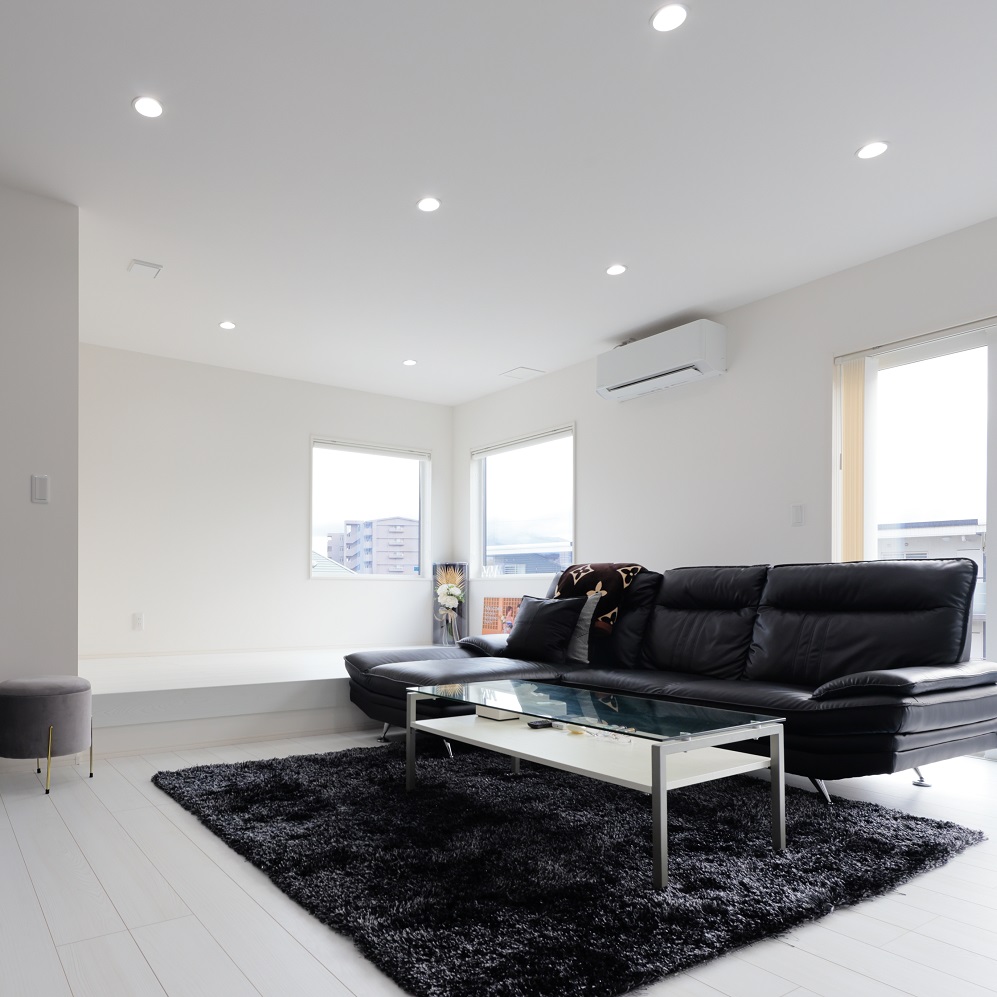 リビングやダイニングには家具を最小限に抑え、広々とした空間を確保。 収納スペースを豊富に設けることで、生活用品や趣味のアイテムもすっきり片付けられる。来客からも収納力の高さを評価され、将来の家族の増加にも対応できる余裕ある設計となった。